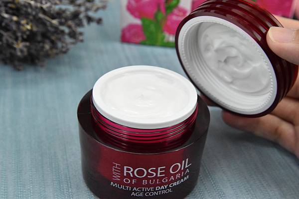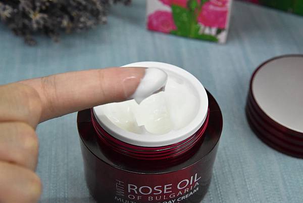 登登~這是柏芙詩女王玫瑰精油系列—多功能換膚日霜,打開後,看看這雪白的日霜,裡面是滿滿的大馬士革玫瑰精油、橄欖油..等等,而且還有抗UV物質,在早上擦完精華液後使用,讓肌膚多一層防護,同時讓皮膚提亮又細緻喔!