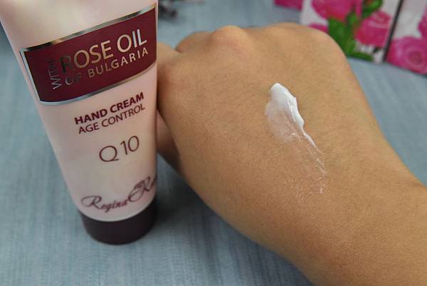 將Q10 凍齡護手霜在手上,非常溫和快速吸收,裡面有Q10成分,能改善暗沉的雙手,雙手擦拭完,整個好舒服,手上都是大馬士革玫瑰精油的味道,聞起來心情好好啊,而且尺寸剛剛好,隨身攜帶放在包包裡很方便喔!女人雙手也是年紀的象徵,當然也需要好好保養一下喔!