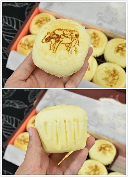 讓我們更近距離的看鮮奶蒸蛋糕的本體,光從外觀看就能看出屬於蛋糕的蓬鬆感,小巧一顆拿在手上剛剛好,也相當好入口哦!上班族忙碌工作,若是較大的蛋糕還要花時間去切,像這樣大小剛好的甜點才最適合團購,難怪鮮奶蒸蛋糕會成為團購甜點的夯品!