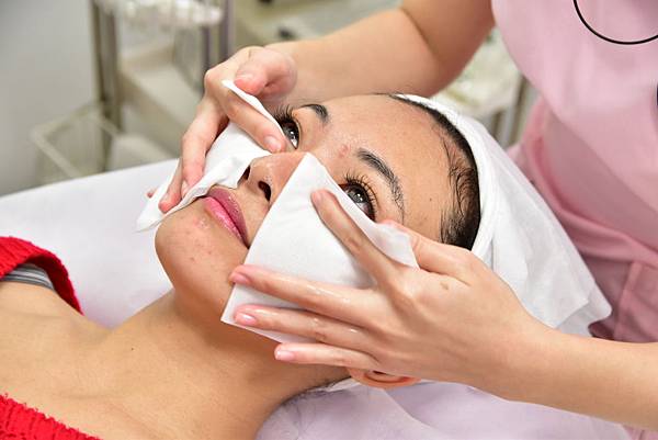 在開始雷射前,美容師先幫我卸妝跟洗臉,味道香香的很舒服~動作非常輕柔,除了卸除底妝之外,眼妝跟眉毛都會留著唷,美眉們不用擔心等等課程結束後會變無眉人~