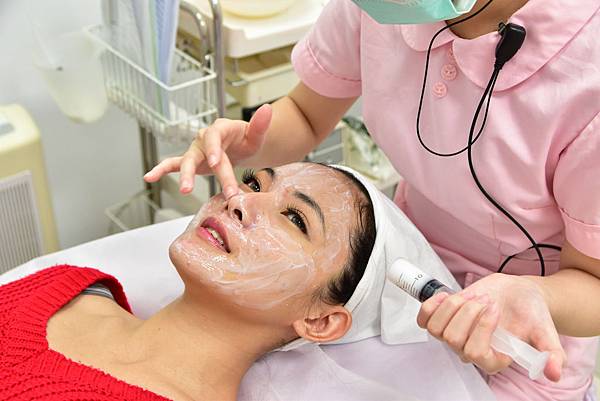 院長在講解的同時會讓我一邊照鏡子一邊看著自己的皮膚問題在哪裡~也會說明課程的原理和效果,但因為我怕講錯所以這邊就不多敘述囉~