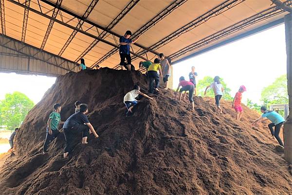 我們家小寶最期待的就是這個!那些咖啡色的全都是木屑不是土唷,豐年會預先藏好一些寶藏,讓孩子可以上去攻頂、尋寶,還可以讓孩子們交交朋友,連我老公看了都想上去玩...最後還可以跟豐年農場的大姊姊一起找雞母蟲,話說~孩子們似乎都不會怕這種蟲蟲,反而玩得很開心(這個媽媽我真的無法)XD