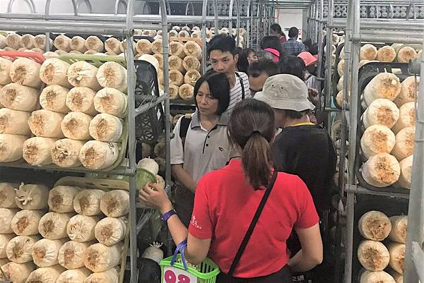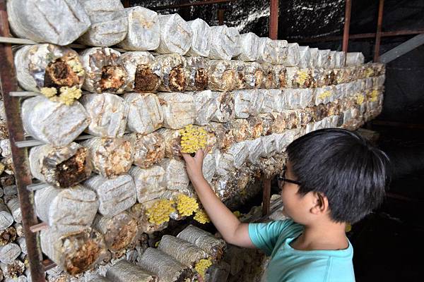 玩完木屑山,再來就跟著出發大姊姊一起去找香菇囉~導覽是每40分鐘一場,大家可以安排自己的時間做選擇~內容滿詳盡的,從太空包製作、栽種、採摘、介紹種類等,也會一路參觀他們的太空包工廠,讓孩子們算是大開眼界了。
